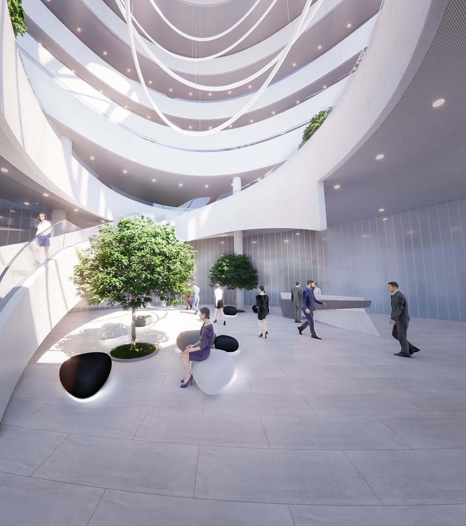 Kiekviena darbo vieta ofiso dalyje aprūpinama natūraliu apšvietimu ir vaizdu pro langą bei geriausiu pasaulinę praktiką atitinkančiu LED apšvietimu. Bendrosios pastato erdvės - atriumo erdvė, žaliosios terasos gali efektyviai būti išnaudojamos tiek darbui, tiek ir poilsiui. Įvairios pastato erdvės pagal poreikius leidžia atsiriboti ir padirbti vienumoje. Tai skatina produktyvumą, kūrybiškumą ir naujų įdėjų generavimą.